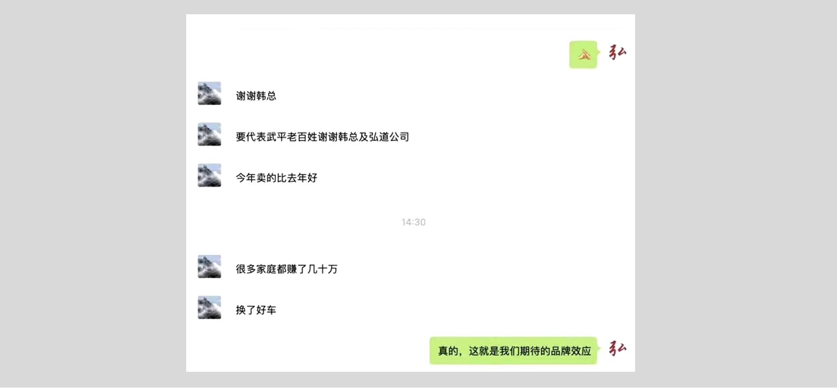 2019年12月,時(shí)任武平縣的劉副縣長特意發(fā)來一份表達(dá)謝意的微信:“感謝弘道團(tuán)隊(duì)的付出,我們今年的武平百香果賣的比去年好,很多果農(nóng)賺了錢買了車”!