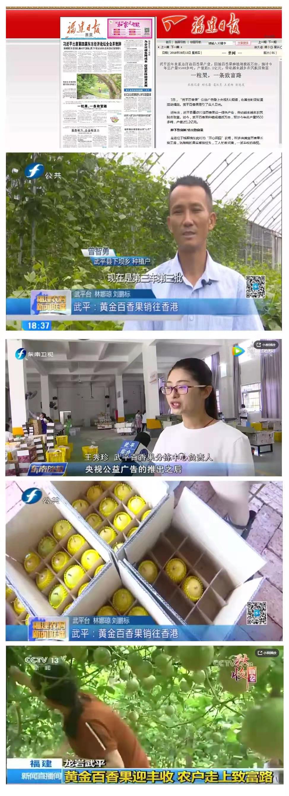于此同時(shí),武平百香果外部的聲音也是如雷貫耳,《閩西日報(bào)》、《福建日報(bào)》、《香港商報(bào)》、《海峽導(dǎo)報(bào)》、央視7套每日農(nóng)經(jīng)、龍巖電視臺、武平電視臺等進(jìn)行全方位的報(bào)道。