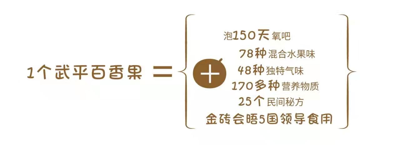 1個(gè)武平百香果=泡150多天氧吧+78種混合水果味+170多種營養(yǎng)物質(zhì)+48種獨(dú)特氣味+25個(gè)民間秘方+金磚會(huì)晤5國領(lǐng)導(dǎo)宴請食用。