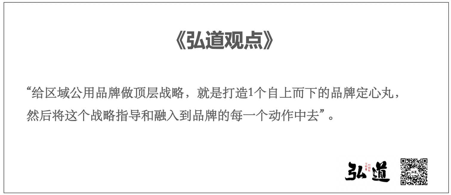 弘道公司認(rèn)為做戰(zhàn)略就是為與不為,做什么和不做什么,對于區(qū)域公用品牌尤為如此。給區(qū)域公用品牌做頂層戰(zhàn)略,就是打造1個(gè)自上而下的品牌定心丸,然后將這個(gè)戰(zhàn)略指導(dǎo)和融入到品牌的每一個(gè)動(dòng)作中去。