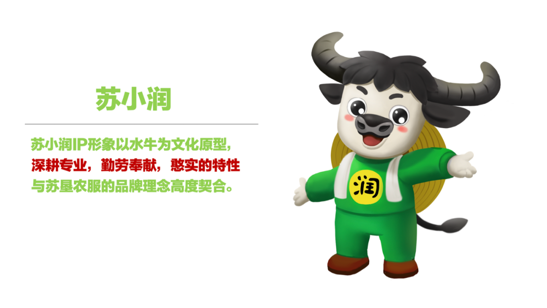 從中國(guó)農(nóng)耕文化中的“水牛”到蘇墾農(nóng)服品牌專屬代言人——“蘇小潤(rùn)”。穿越幾千年,默默服務(wù)、默默奉獻(xiàn)的本質(zhì)和精神一直沒(méi)變。
