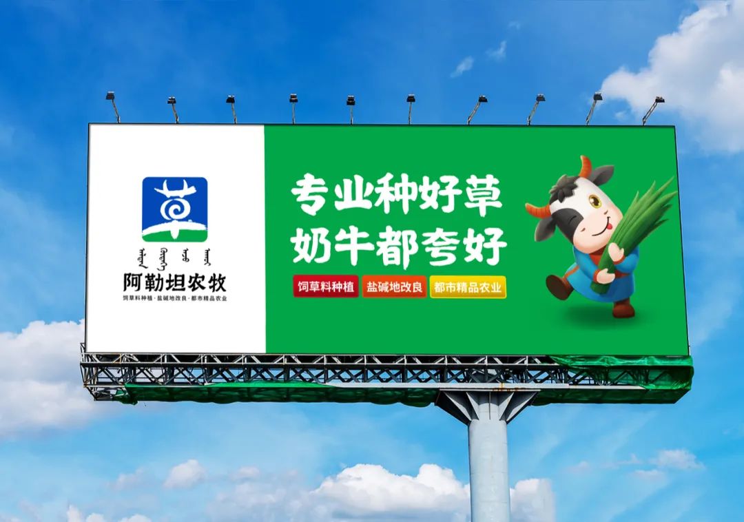 為了強化這個心智,打造“聚焦飼草料產業(yè)”的品牌認知,我們將“草”這個心智直接進行視覺化、符號化,LOGO直接解讀戰(zhàn)略,LOGO直接宣告核心業(yè)務,LOGO直接展示阿勒坦在飼草料種植上的專業(yè)度,戰(zhàn)略與視覺形成統(tǒng)一,心智的眼睛被“草”這個符號點亮和強化。