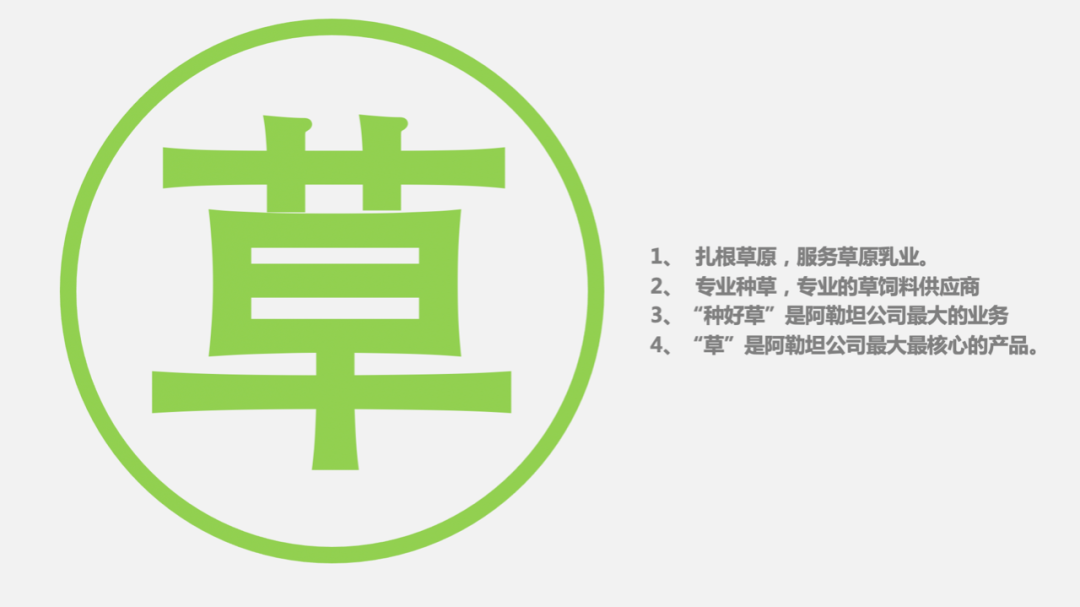 2020年的夏季,正值敕勒川大地“天蒼蒼,野茫茫,風吹草低見牛羊”的時節(jié),作為“土默特左旗”的種草企業(yè),同時也作為國內最大乳業(yè)品牌“伊利”的供草商之一——阿勒坦農牧業(yè)投資發(fā)展有限公司,邀請弘道團隊對其所從事的核心業(yè)務——飼草料進行品牌打造,同時對其企業(yè)戰(zhàn)略進行規(guī)劃設計。