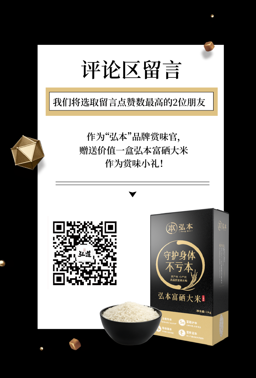 作為“弘本”品牌賞味官,贈(zèng)送價(jià)值一盒弘本富硒大米,